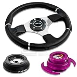 | ✚✚✚ NRG-SRK-100H+008R+650PP, NRG Innovations 13.78" 350mm Black Leather Racing Steering Wheel Combo with 6 Hole Short Hub Adapter with Gen 3.0 with Handle Purple Quick Release Kit SRK-100H NRG Quick Release features many options that conventional ball-locking quick release system do not. It is specially engineered with raised sections to prevent the scratching and stretching of the hub while a self locking feature adds increased safety and functionality. Features racing styled for added style and look. Each unit is made from the highest quality aircraft grade aluminum and is anodized for maximum durability and finish.
