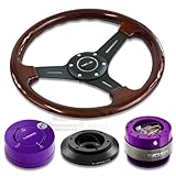 NRG-SRK-180H+200PP+101PP+015RBK, NRG Innovations 13" 330mm Deep Dish Style Wood Grain Black Spokes Racing Steering Wheel Combo with 6 Hole Short Hub Adapter with Gen 2.0 Purple Quick Release with Purple Lock Hub Kit SRK-180H
